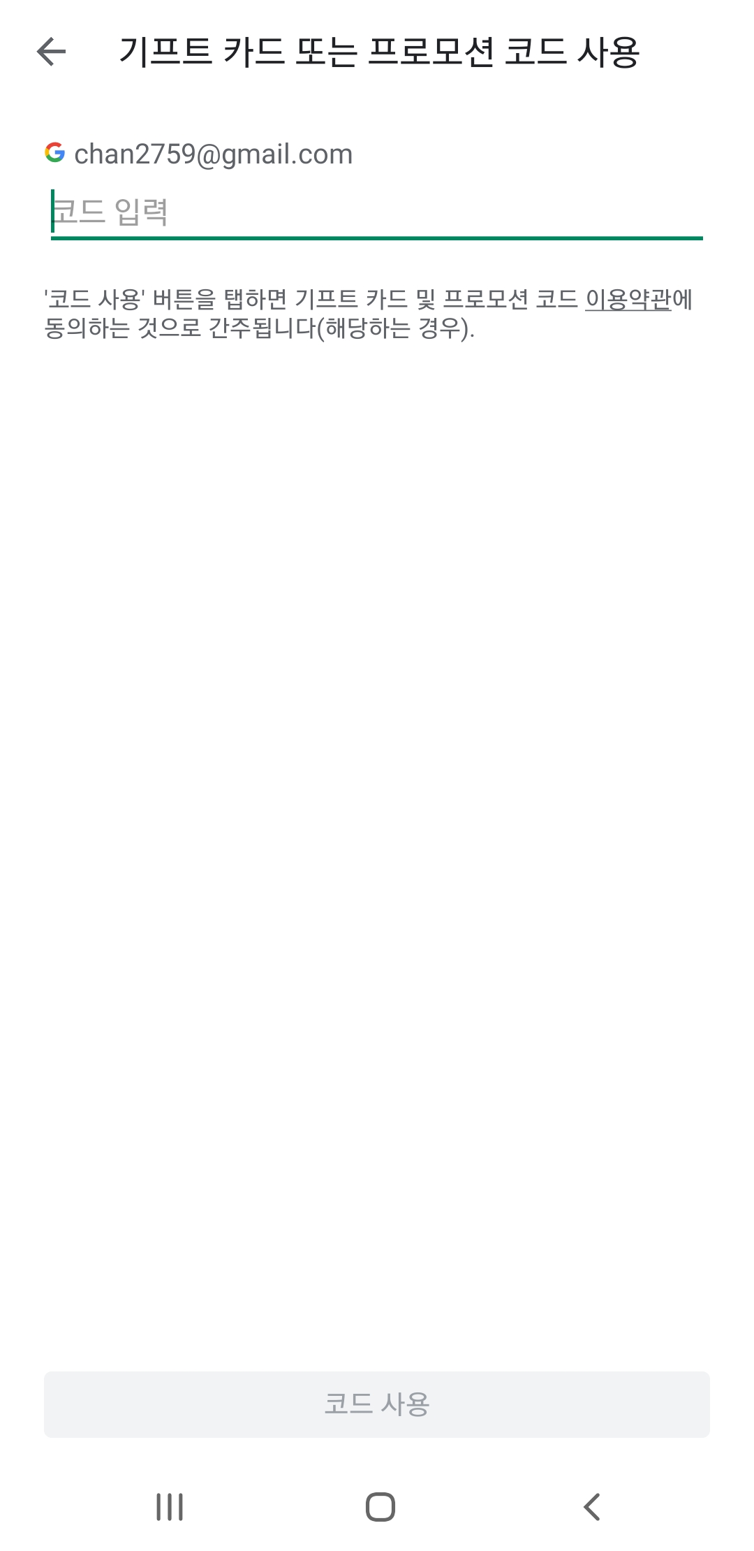 1. 구글 기프트카드의 코드번호를 부모의 구글계정 스토어에 등록한다