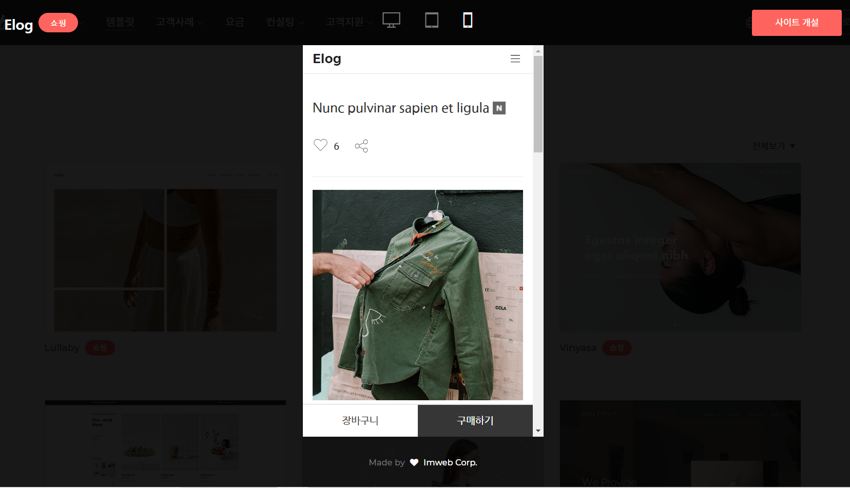 이제 아임웹에서 만들어놓은 마음에 드는 템플릿을 선택해줍니다