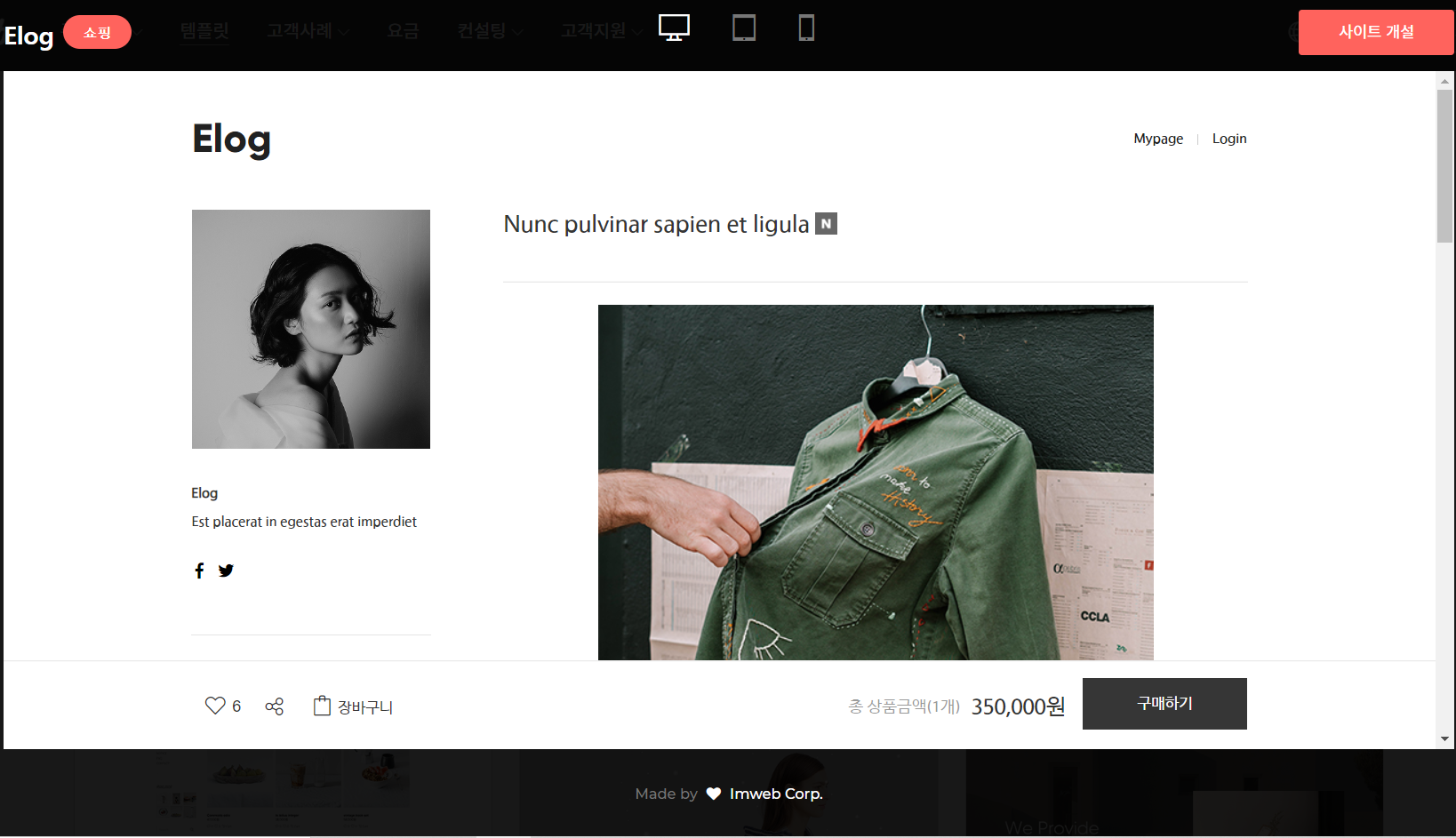 아임웹의 장점은 본인이 웹 빌딩에 대한 전문적인 지식이 없어도 쉽고 간편하게 만들어 주며 본인이 직접 쉽게 수정을 할 수가 있어 추가 수정에 따른 시간과 금전을 절약할 수 있습니다 정말 좋은 사이트이지 않나요?ㅎ