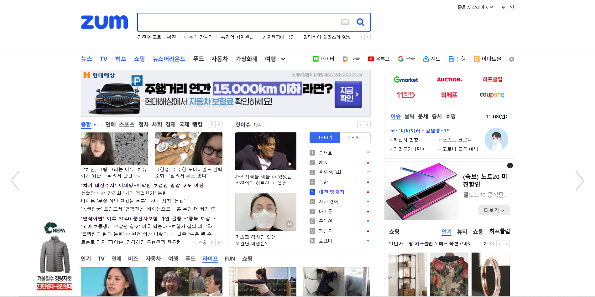 그러다 다시 다음을 메인을 바꾸고 한동안 또 사용하다 보면 줌(zum)으로 바뀌었지요