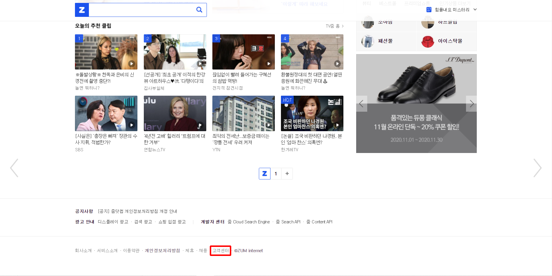 메인 페이지에서 가장 밑으로 내러가시면 고객센터가 있습니다 클릭해주시고요!