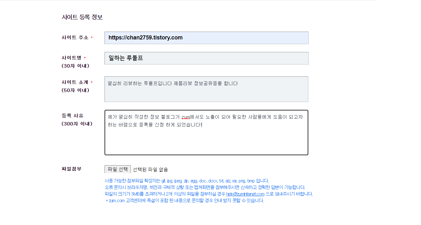티스토리 블로그 줌(zum) 사이트등록 방법