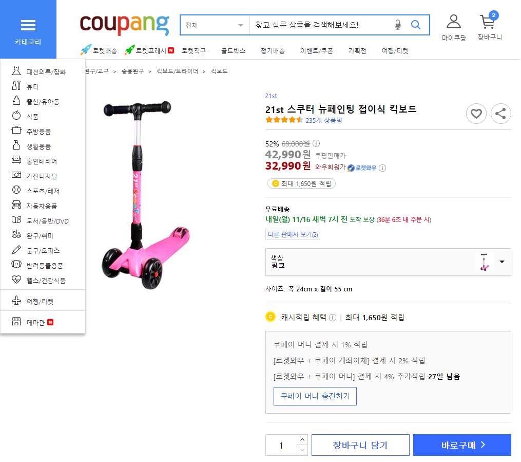 쿠팡 골드박스 제품중 아이들 킥보드인데요