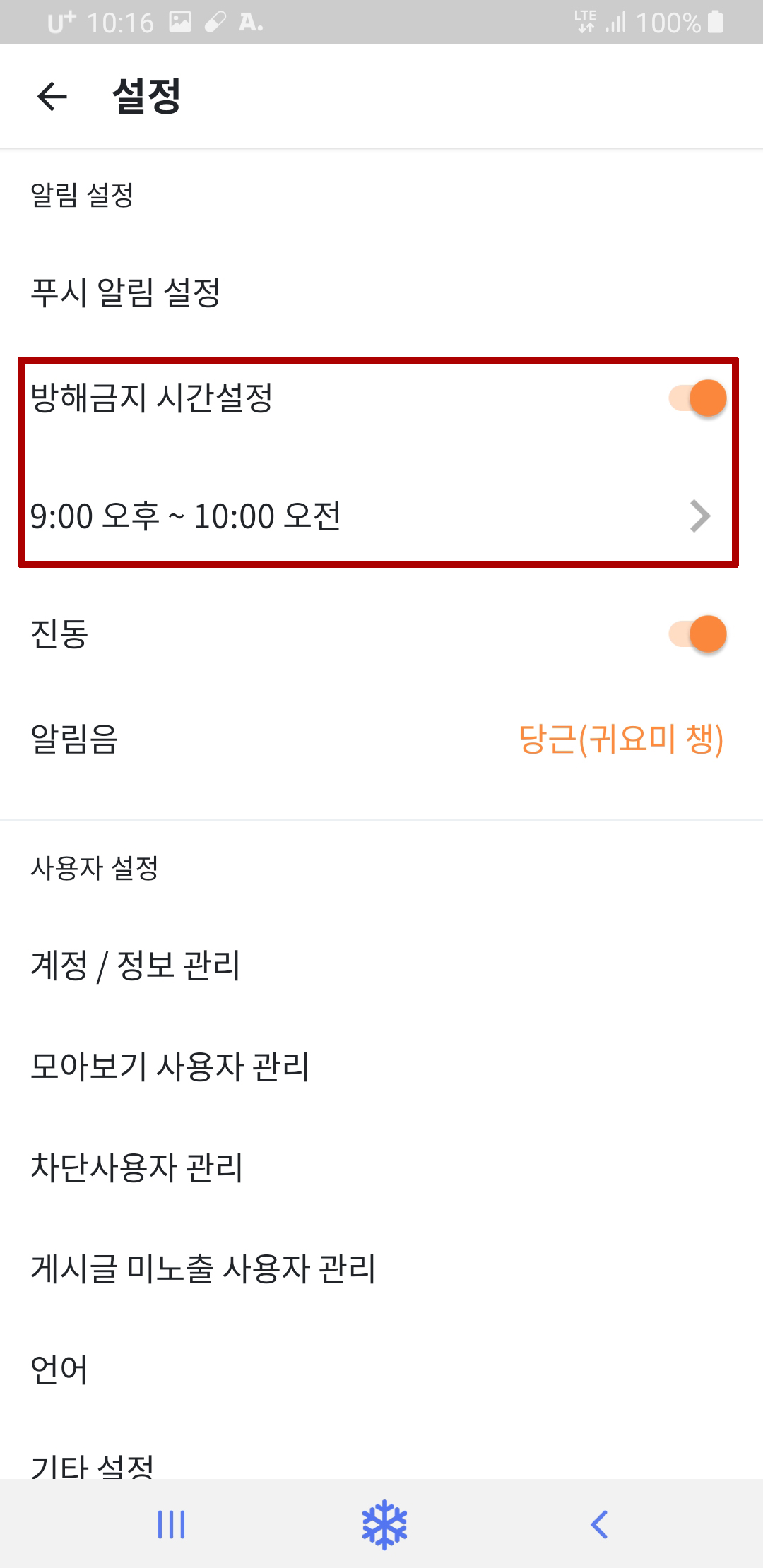 설정에 방해 금지 시간 설정도 있으니 취침시간이나 공부하는 시간대에 사용하시면 좋을 것 같아요!