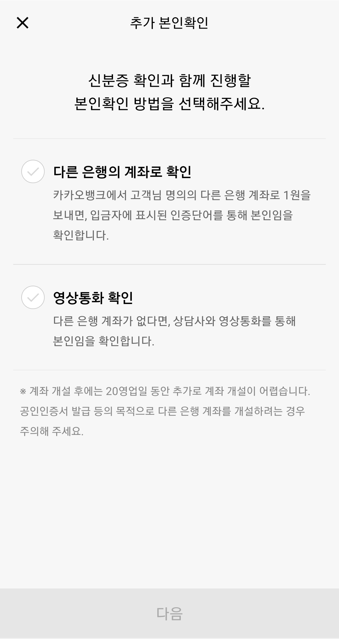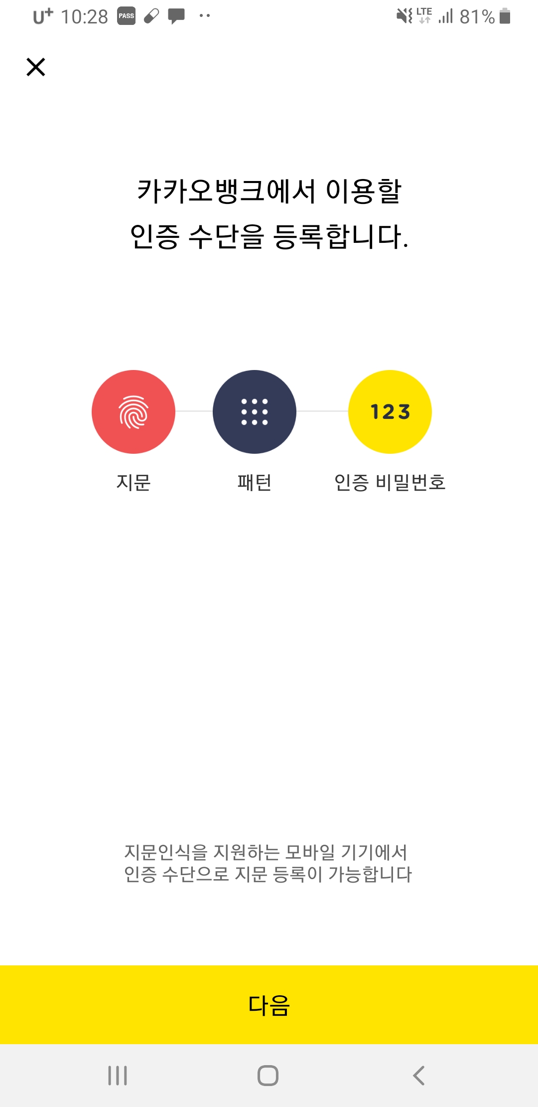 그러고나면 카카오 뱅크에서 이용할 인증 수단을 등록하라고 한답니다!