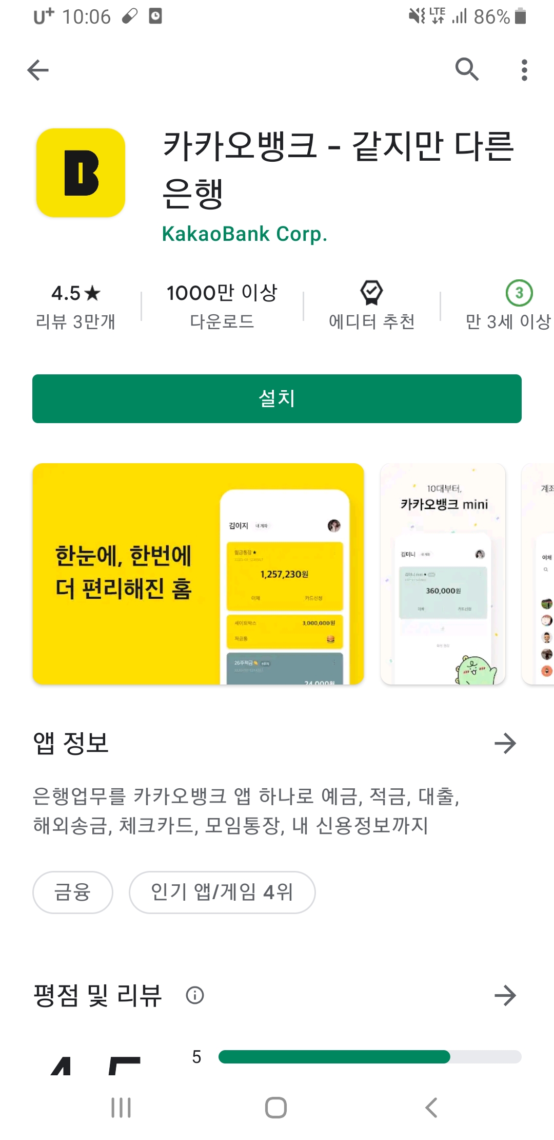 먼저 앱스토에 들어가 카카오 뱅크를 설치해줍시다!