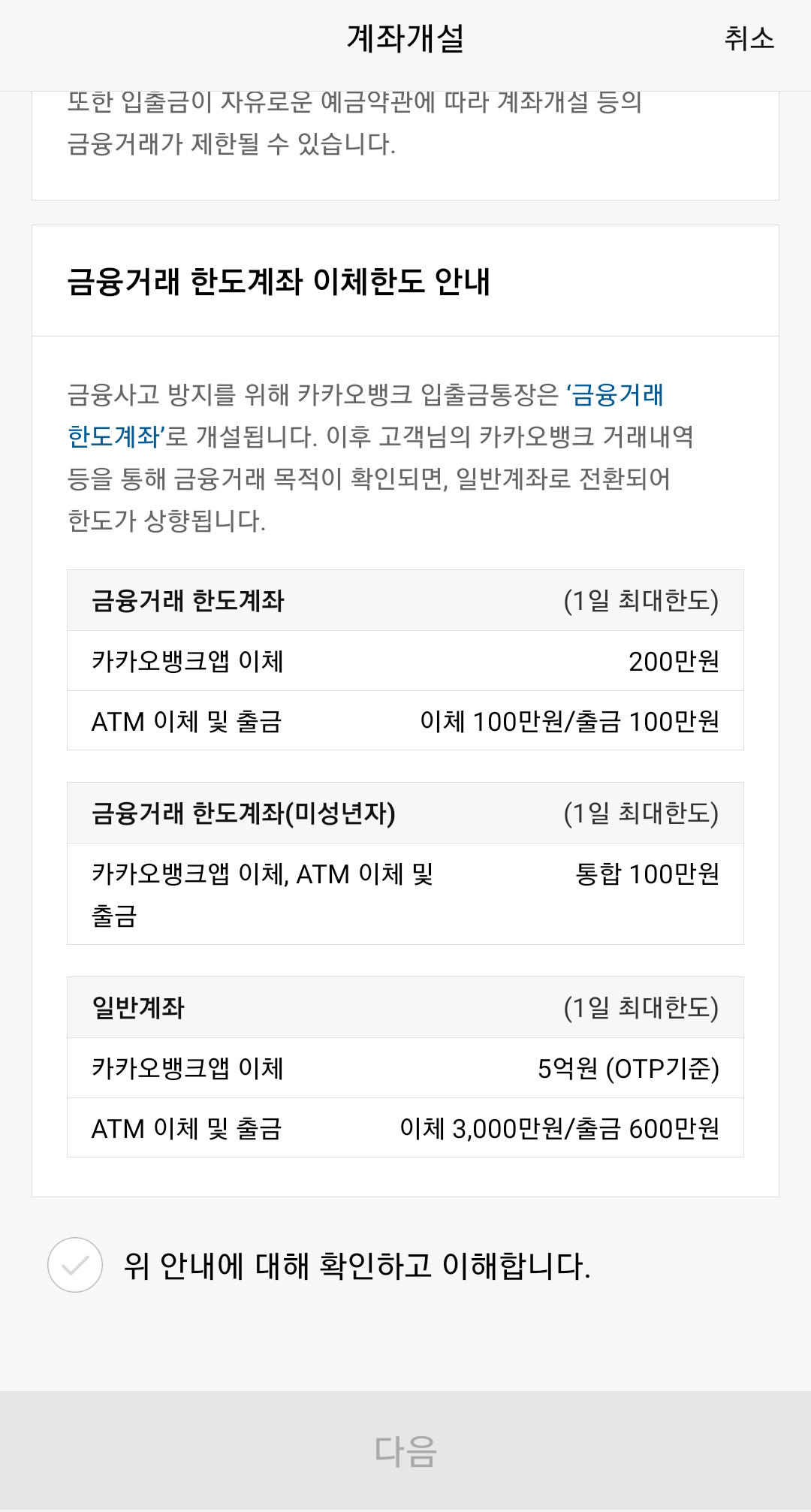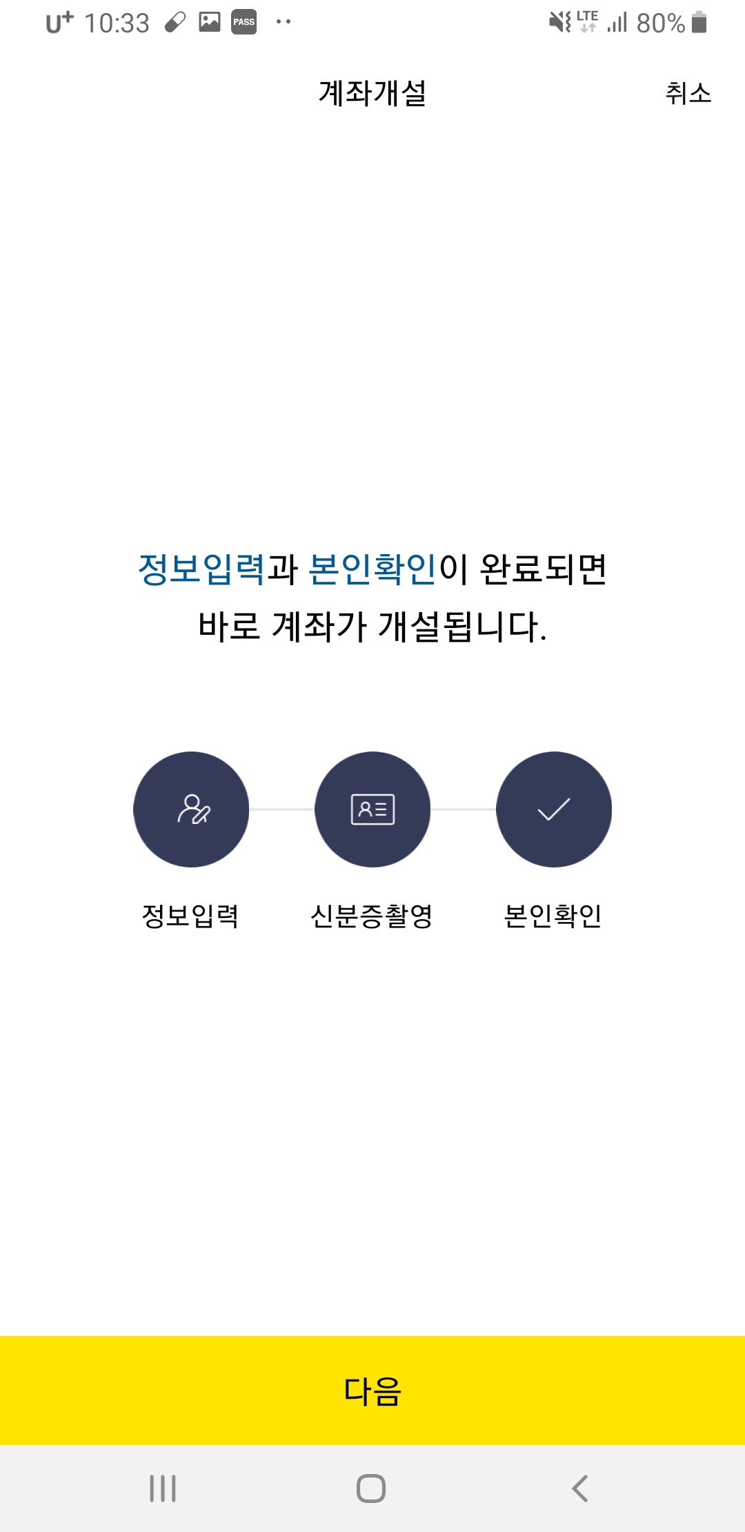 다음을 누르시면 계좌 개설을 위해 개인정보를 정확히 입력하라고 나옵니다