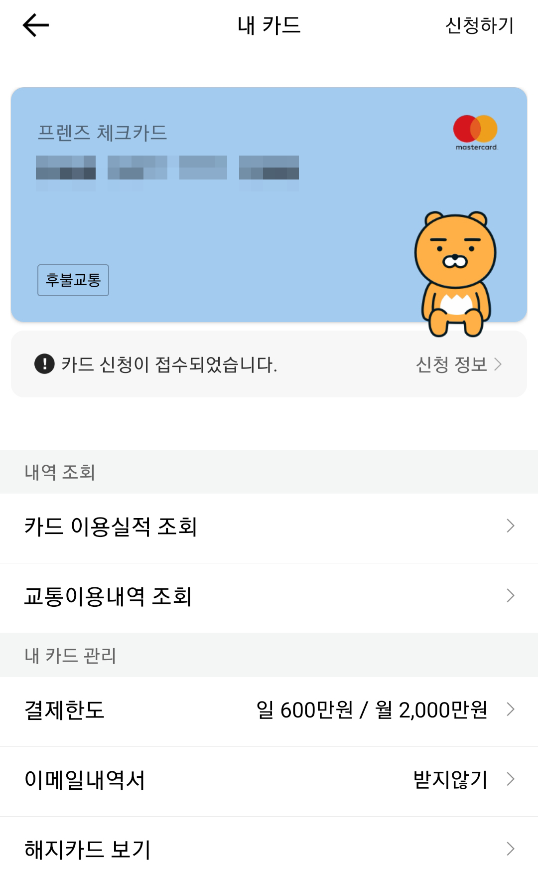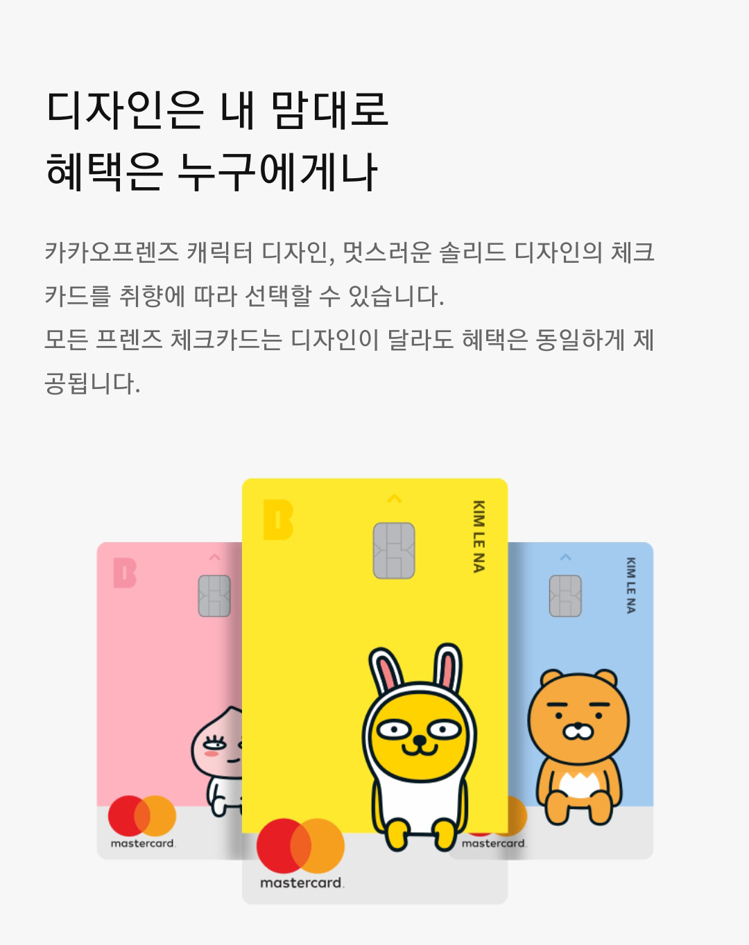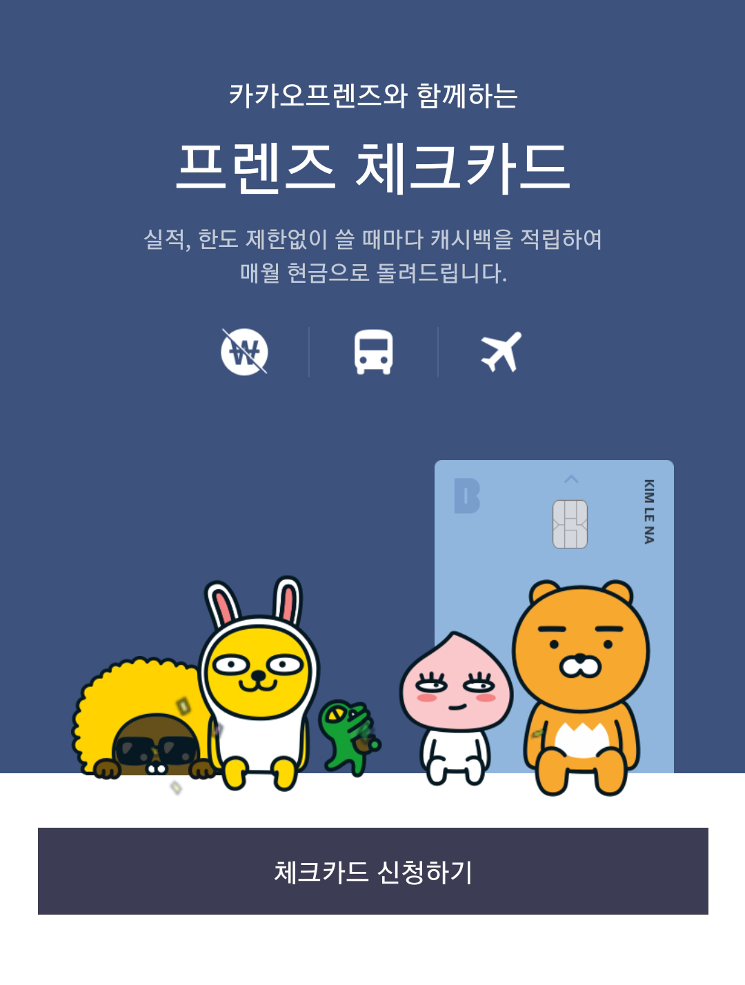 귀여운 카카오 프렌즈를 위해서라도 체크카드를 신청해 주세요~
