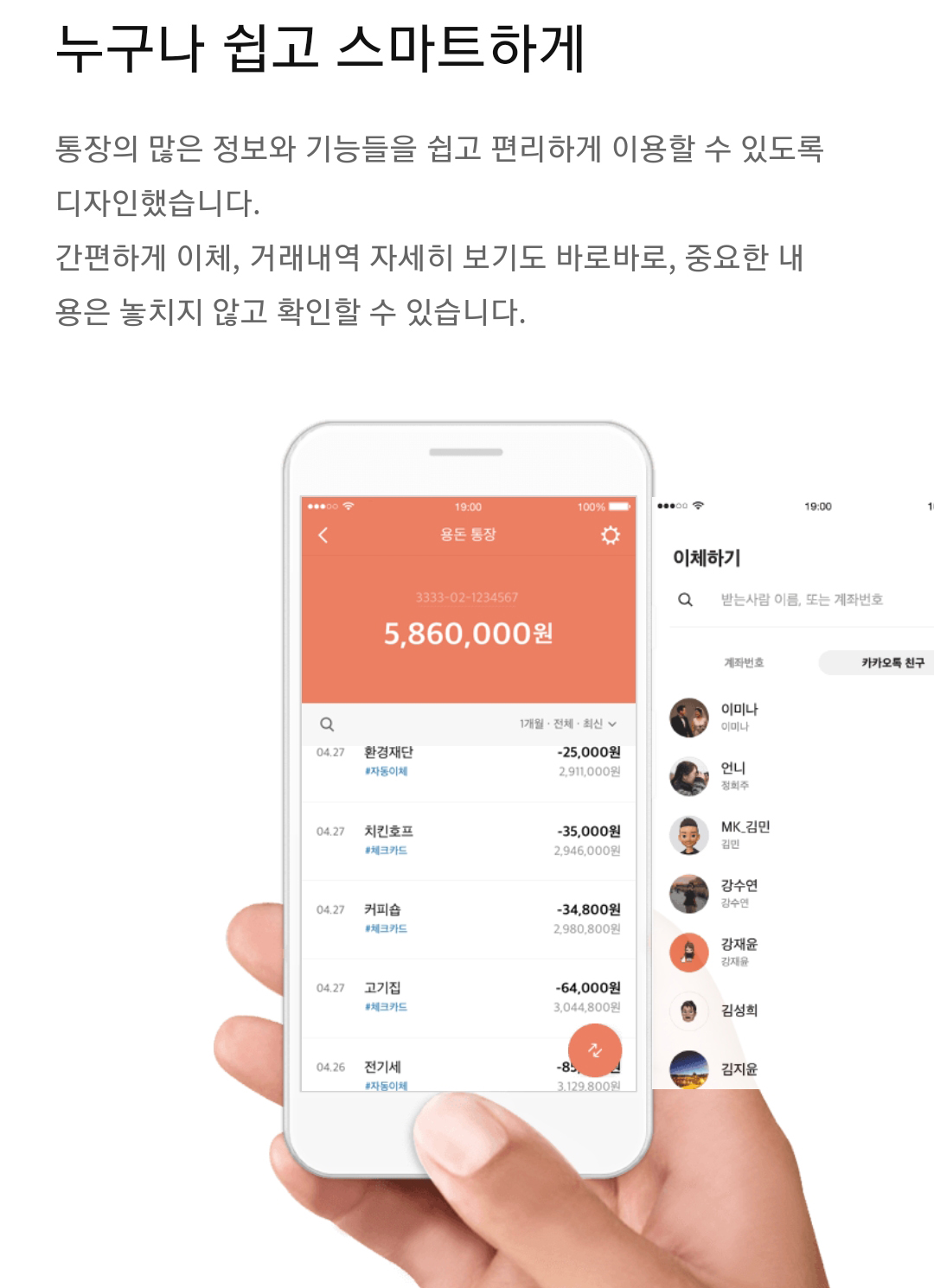 실제 은행 지점은 없지만 인터넷만으로 시간과 장소에 구애받지않고 모든 금융거래가 가능하기에 내손안에 은행이란 별명을 가지고있죠?