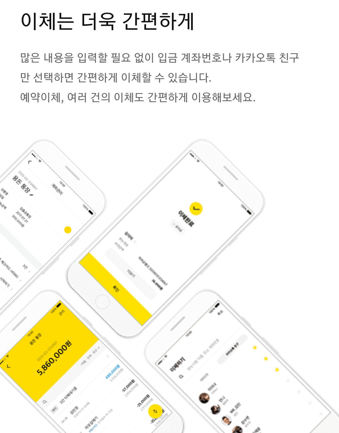 계좌개설이 쉽고 공인인증서가 없으며 송금이 편하고 수수료가 없는등 다양한 장점을 가진 카카오 뱅크!