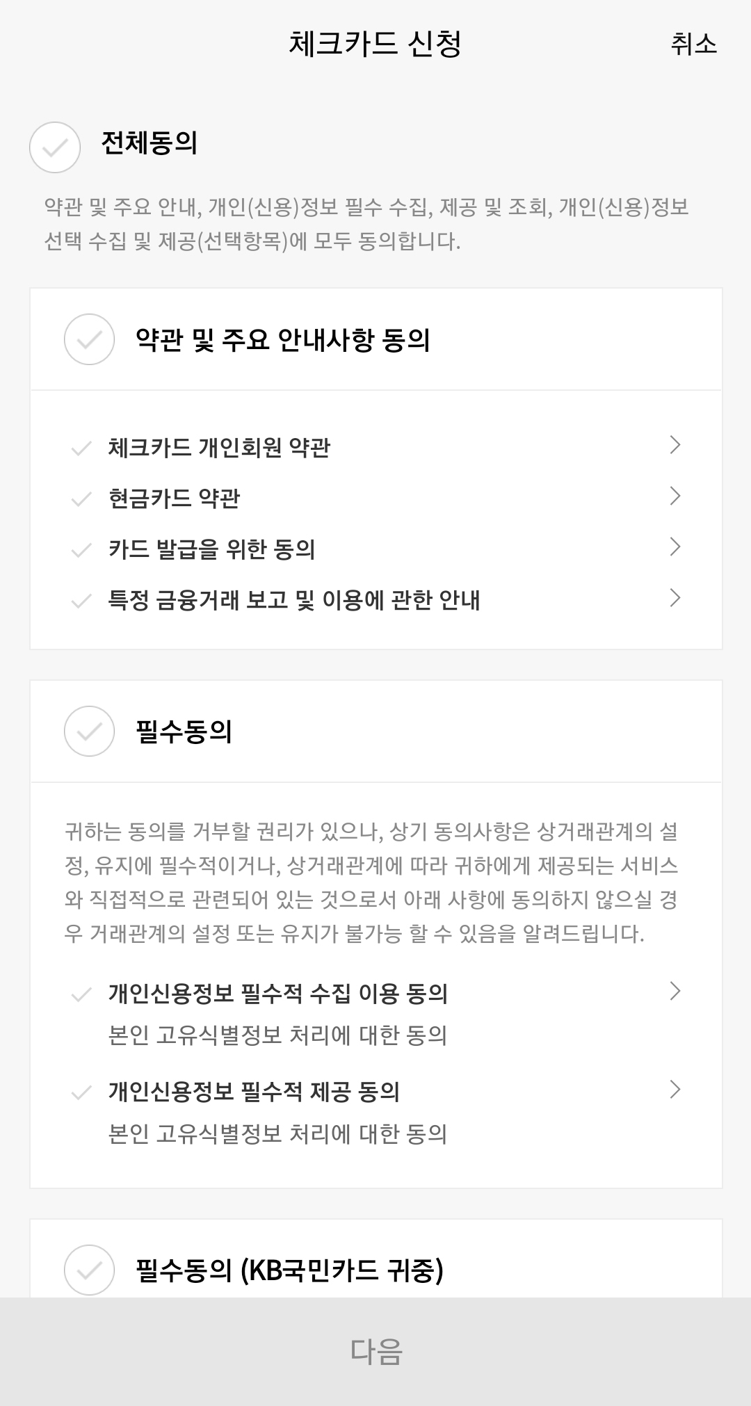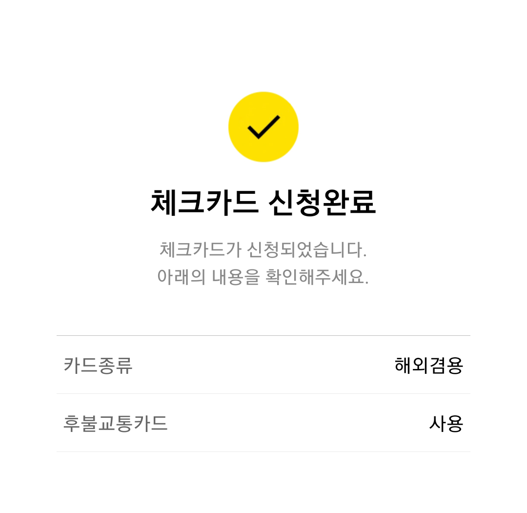 체크카드신청이 완료 되었습니다! 수고하셨어요!^~^d