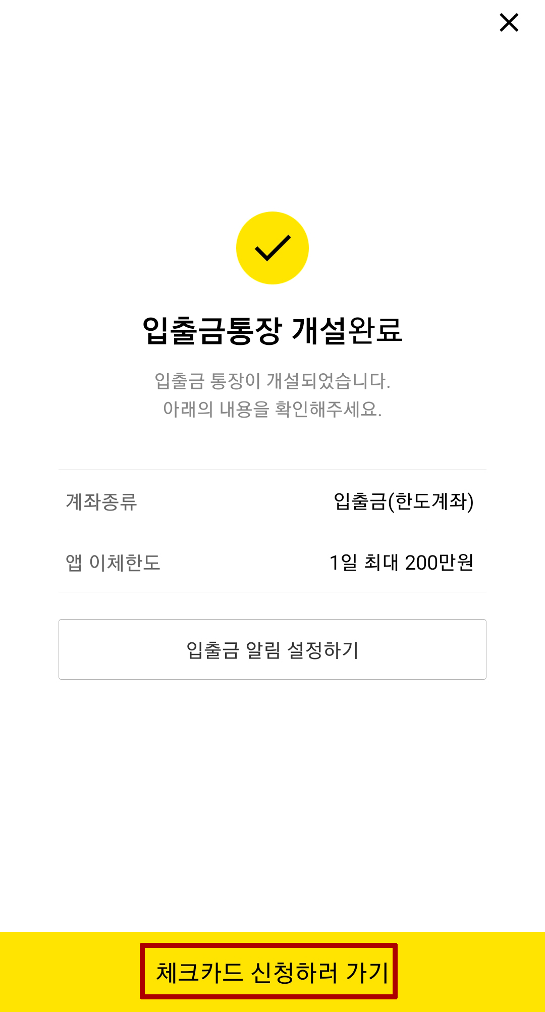 입출금통장 개설 완료 맨밑에 체크카드 신청하기가 있죠?
