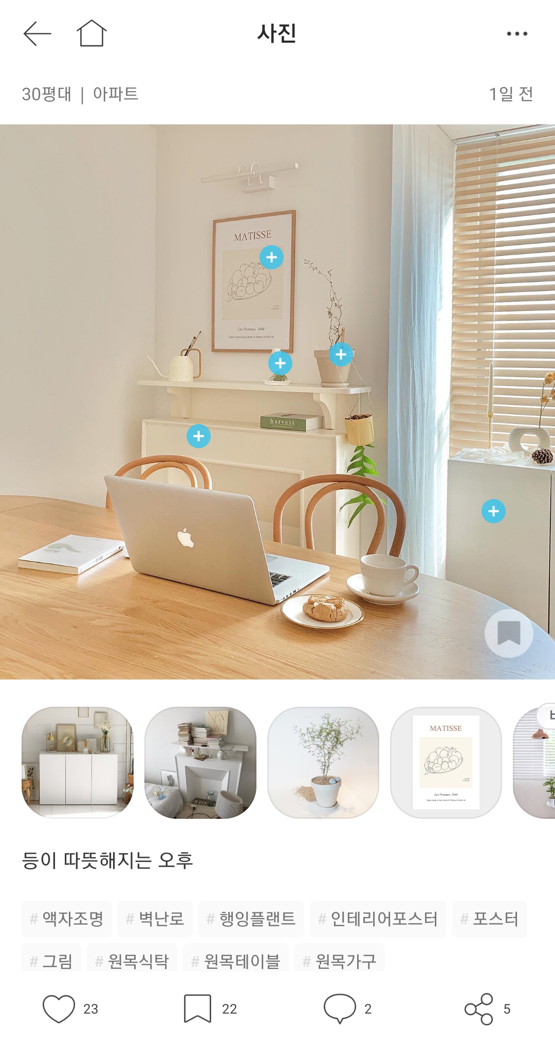 두 번째 메뉴인 사진에서는 소품을 활용한 공간 꾸미기를 한 사진들을 볼 수 있습니다.