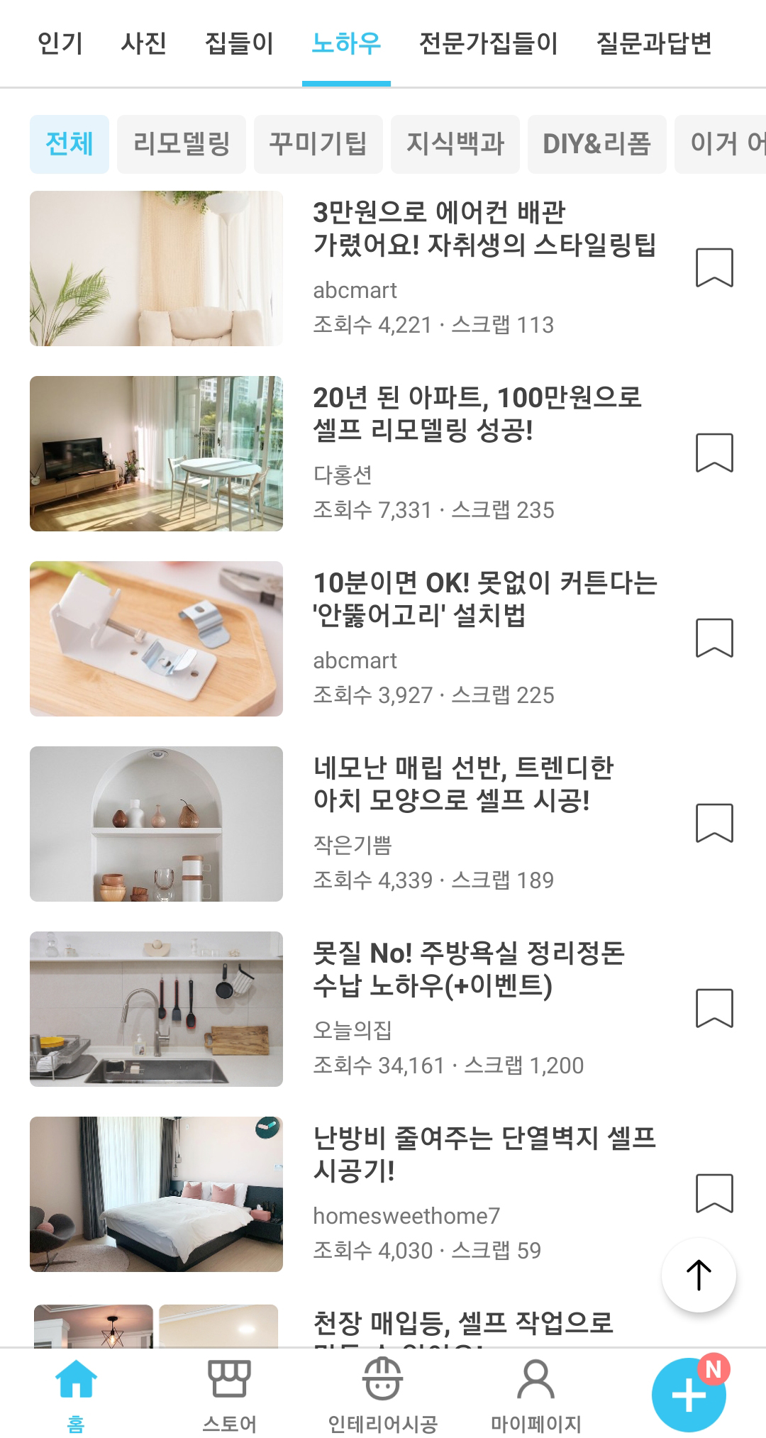 네 번째 메뉴인 노하우에서는 집 꾸미기 팁 공간 활용 등 개인의 경험 등을 통해 얻은 좋은 팁들을 얻을 수 있습니다!