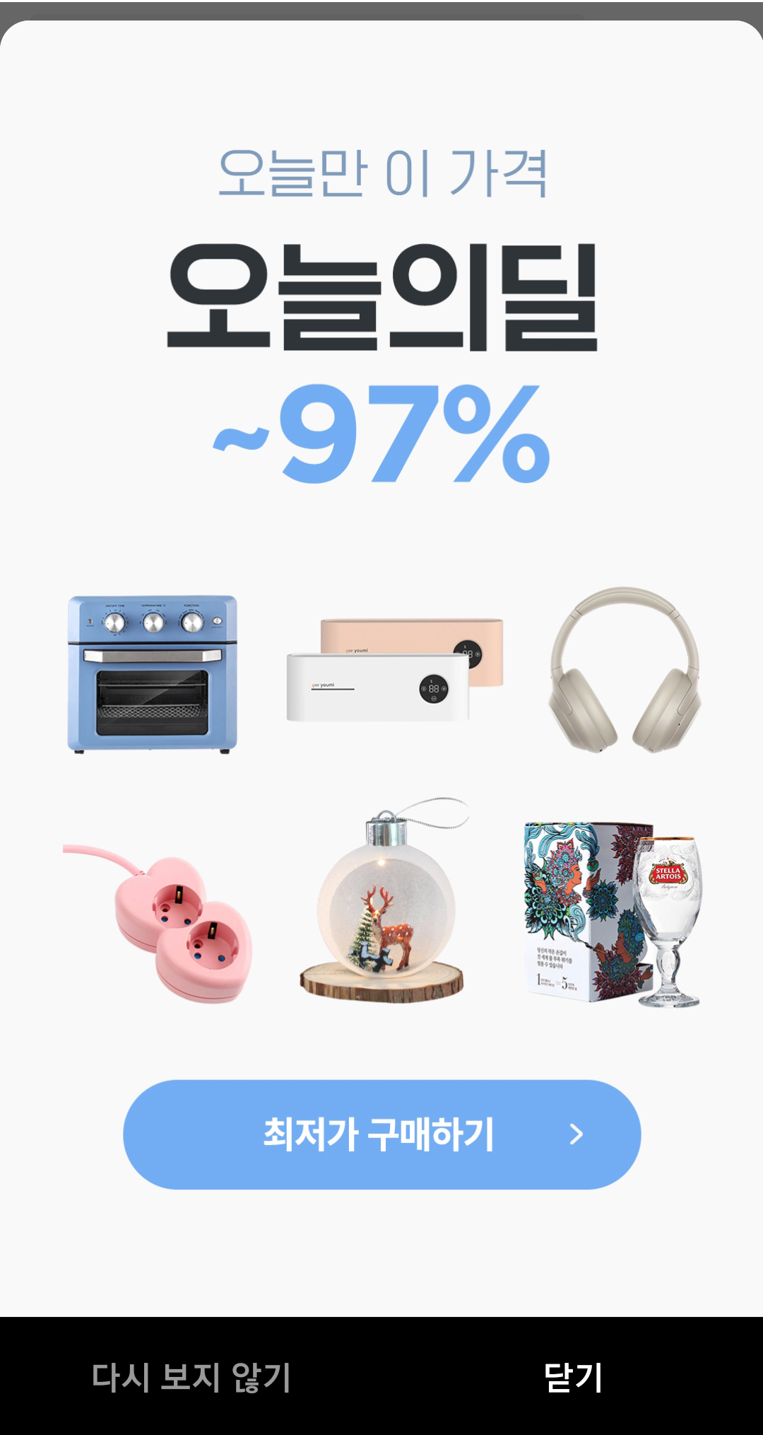 어플을 실행시키시면 이렇게 오늘의 딜을 보실 수 있습니다!