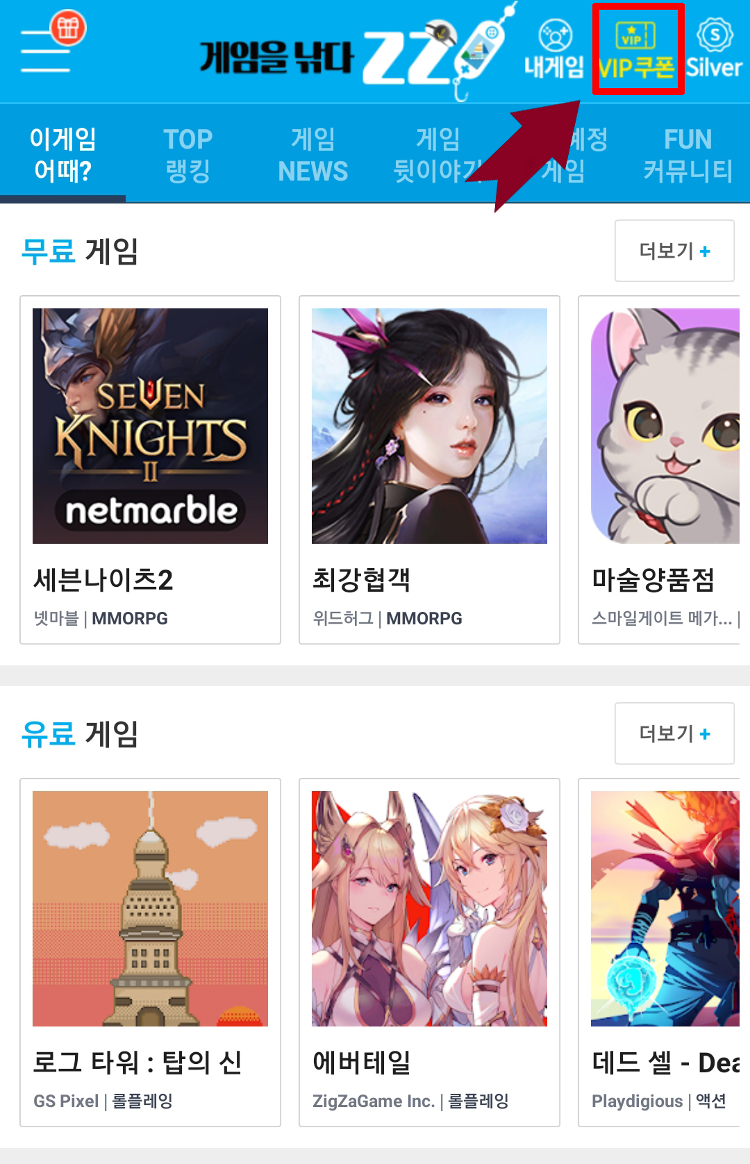 그리고 우측 상단에 보시면 VIP 쿠폰이 있는데요!