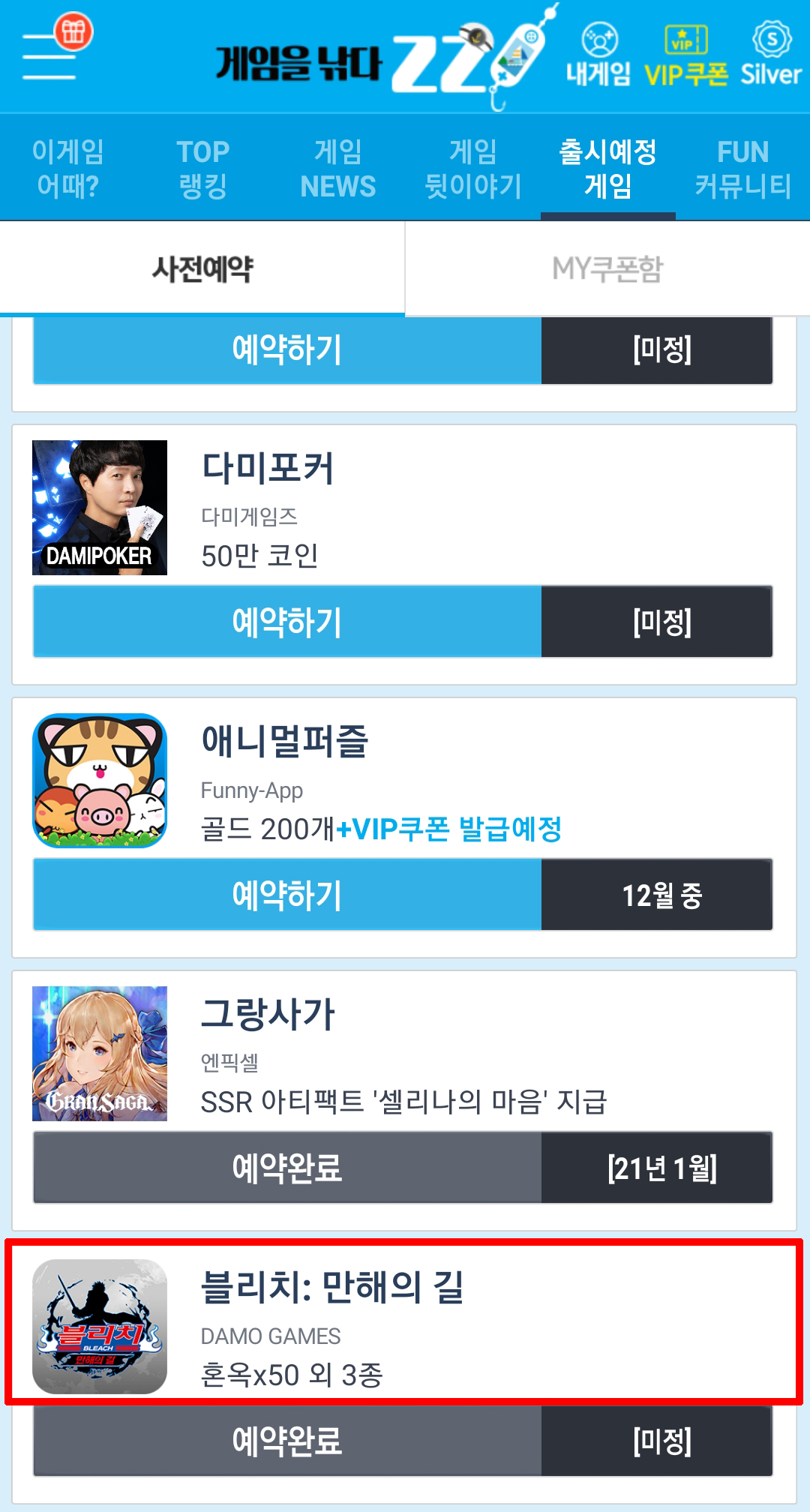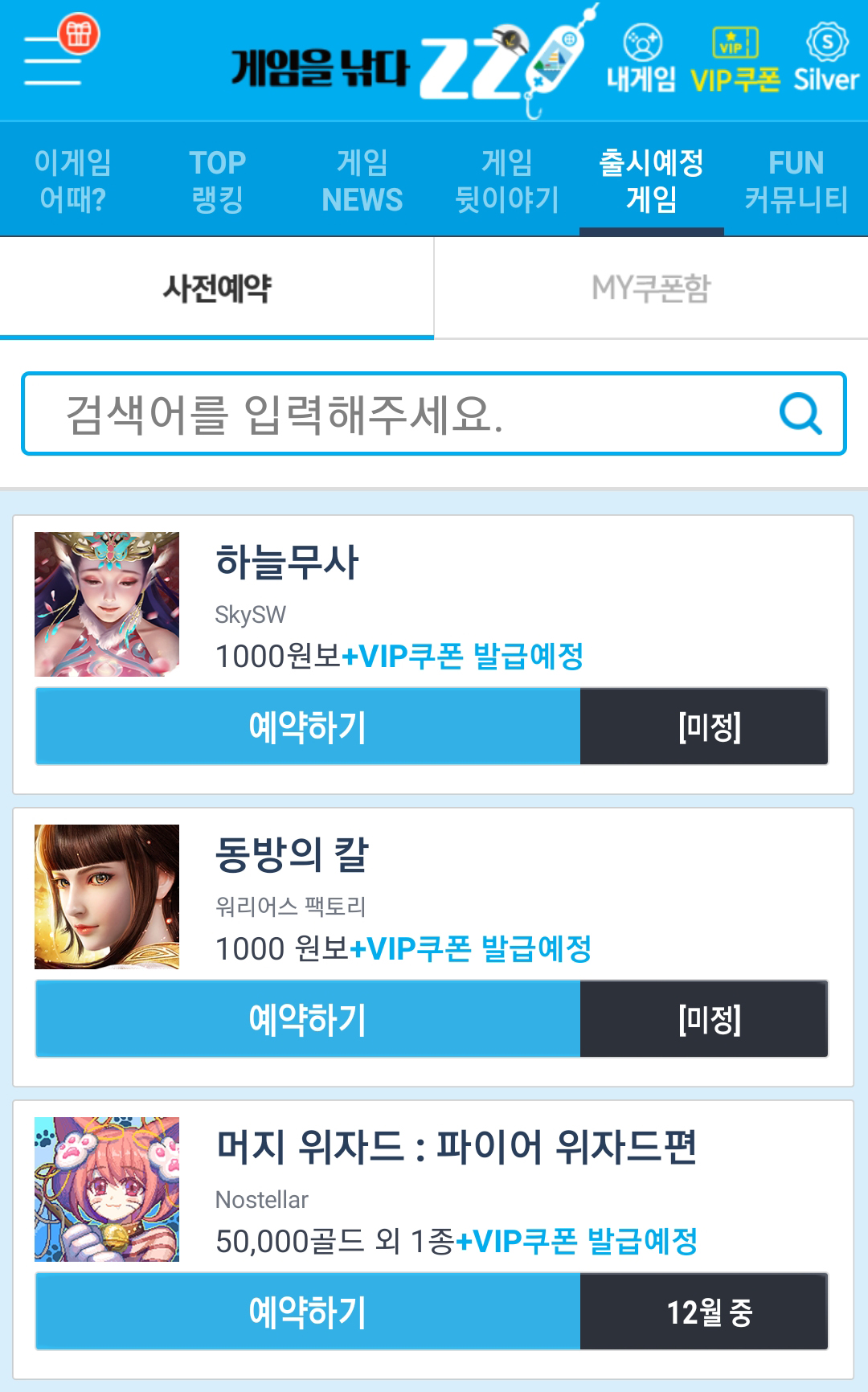 그리고 가장 중요한 출시 예정 게임을 누르시면 앞으로 출시할 게임들을 사전 예약하실 수 있답니다!