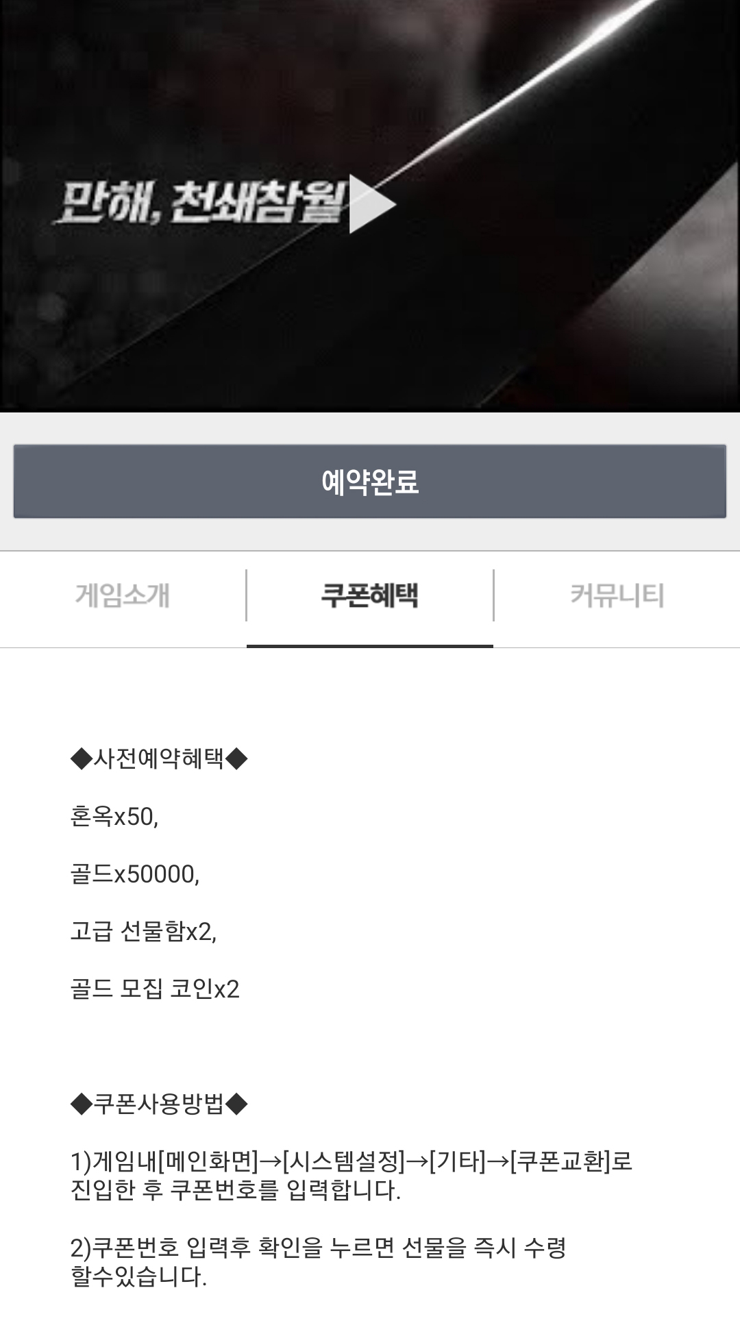 쿠폰 사용 방법도 자세히 설명해주어 게임 시작하고 쿠폰을 어디에 입력해야 하나 헤맬 필요가 없어요!