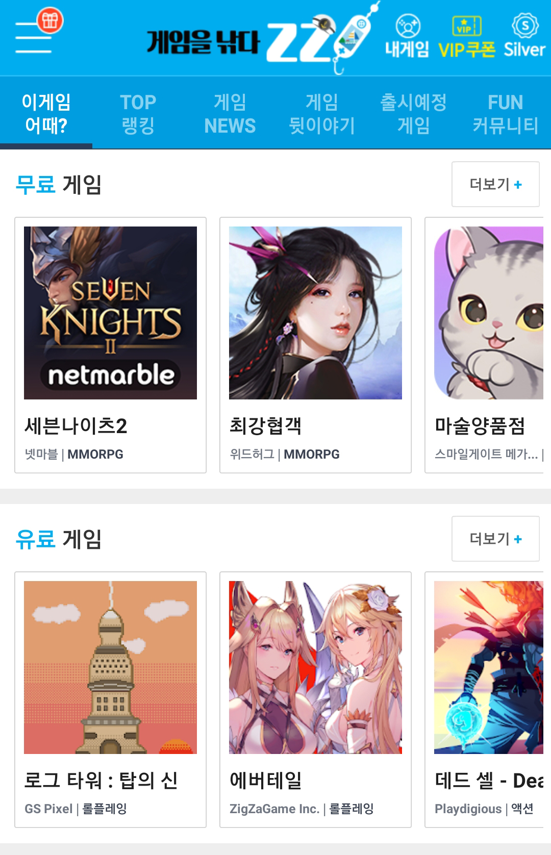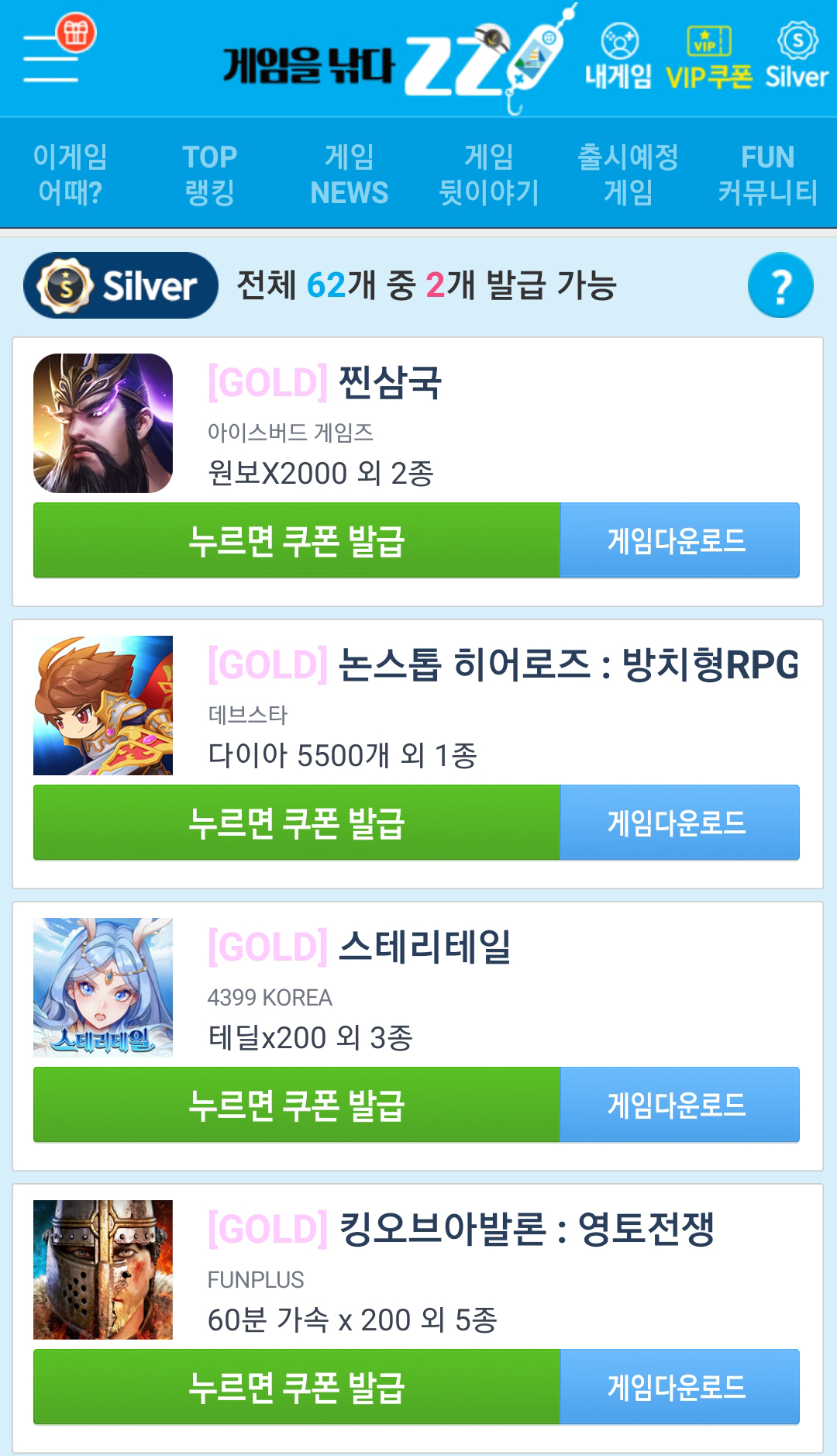 게임을 눌러보시면 간단한 게임 소개와 쿠폰 혜택을 보실 수 있습니다!