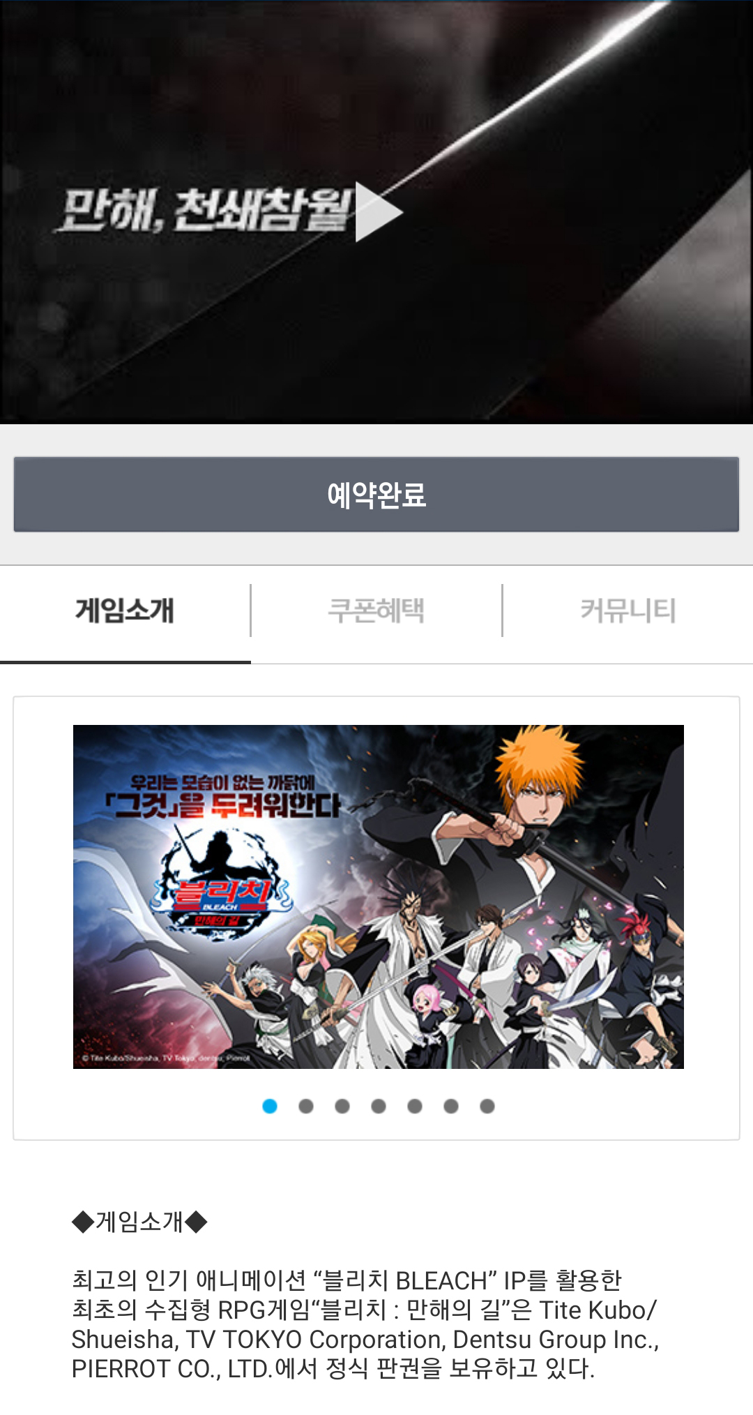 애니메이션으로 재미있게 보았던 블리치를 사전 예약해보았습니다