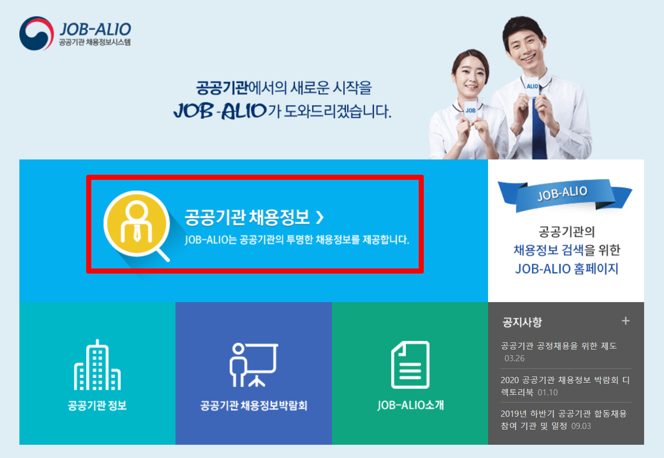 공공기관의 모든 채용정보를 한눈에 확인하고 비교할 수 있는 구직자 맞춤형 채용정보서비스인 잡알리오!