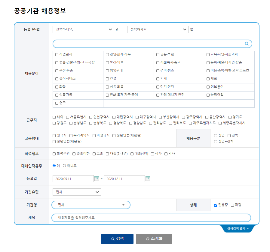 ↓ 본인이 원하는 채용분야, 근무지, 고용형태, 학력 정보 등을 입력하신 후 검색해주세요.